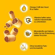 Οδηγός χορήγησης: δίνεται ως ανταμοιβή-λιχουδιά και δεν αποτελεί μέρος της διατροφής. Για σκύλους έως 15 κιλά ταΐστε 2 τεμάχια την ημέρα. Για σκύλους 15-30 κιλά ταΐστε 4 τεμάχια την ημέρα. Για σκύλους 30 κιλών και άνω, ταΐστε 6 τεμάχια την ημέρα. Να βεβαιώνεστε πάντα ότι το ζώο έχει πρόσβαση σε καθαρό πόσιμο νερό. Αυτό το προϊόν δεν προορίζεται για ανθρώπινη κατανάλωση. Αποθηκεύστε σε δροσερό, ξηρό μέρος!