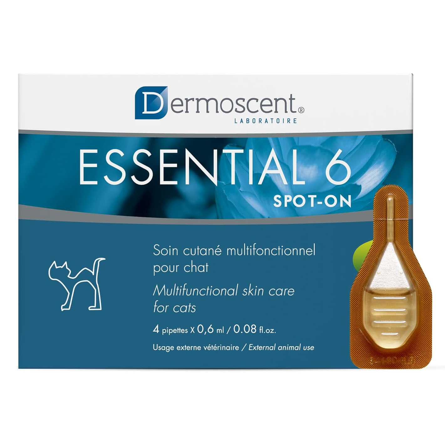 - Το προϊόν Dermoscent Essential 6 είναι η πρώτη πολυλειτουργική φροντίδα για γάτες προσαρμοσμένη σε όλους τους τύπους δέρματος και τρίχας.