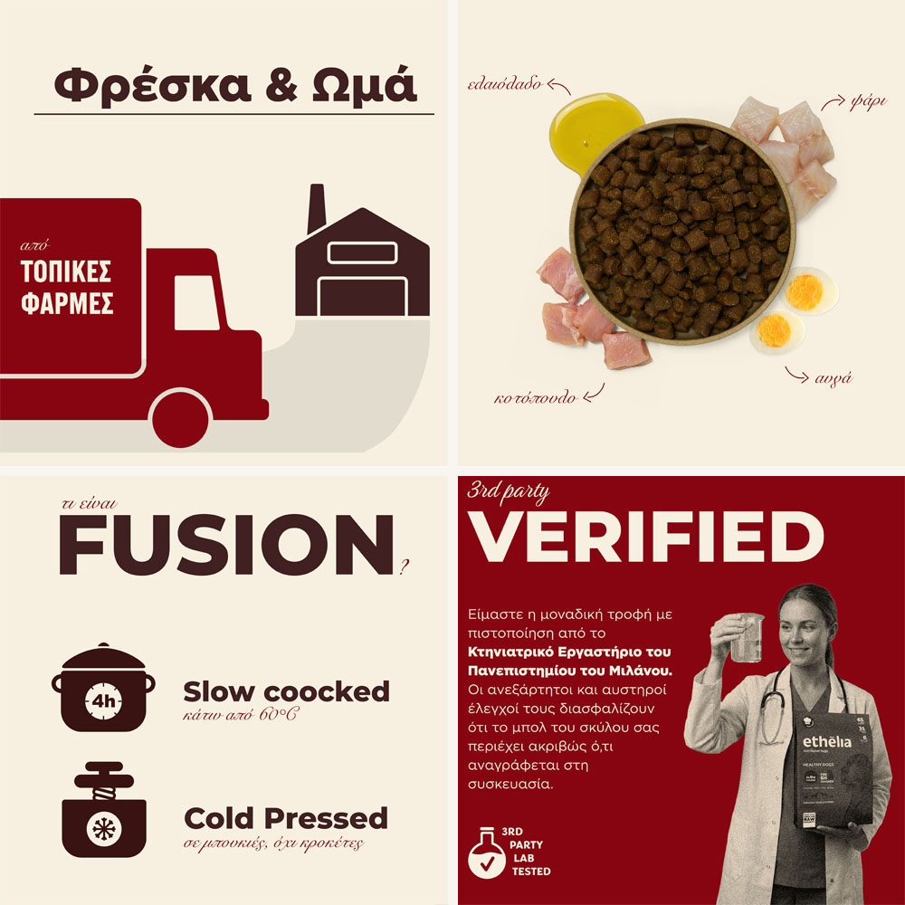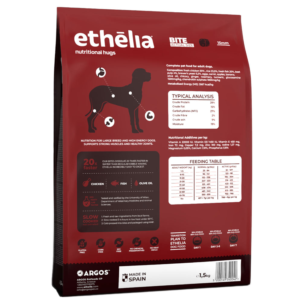 Χωρίς καλαμπόκι, σόγια, κρεατάλευρα ή χημικά συντηρητικά, η Ethelia Titans είναι μια “καθαρή”, ήπια επεξεργασμένη ξηρά τροφή από φρέσκα υλικά.