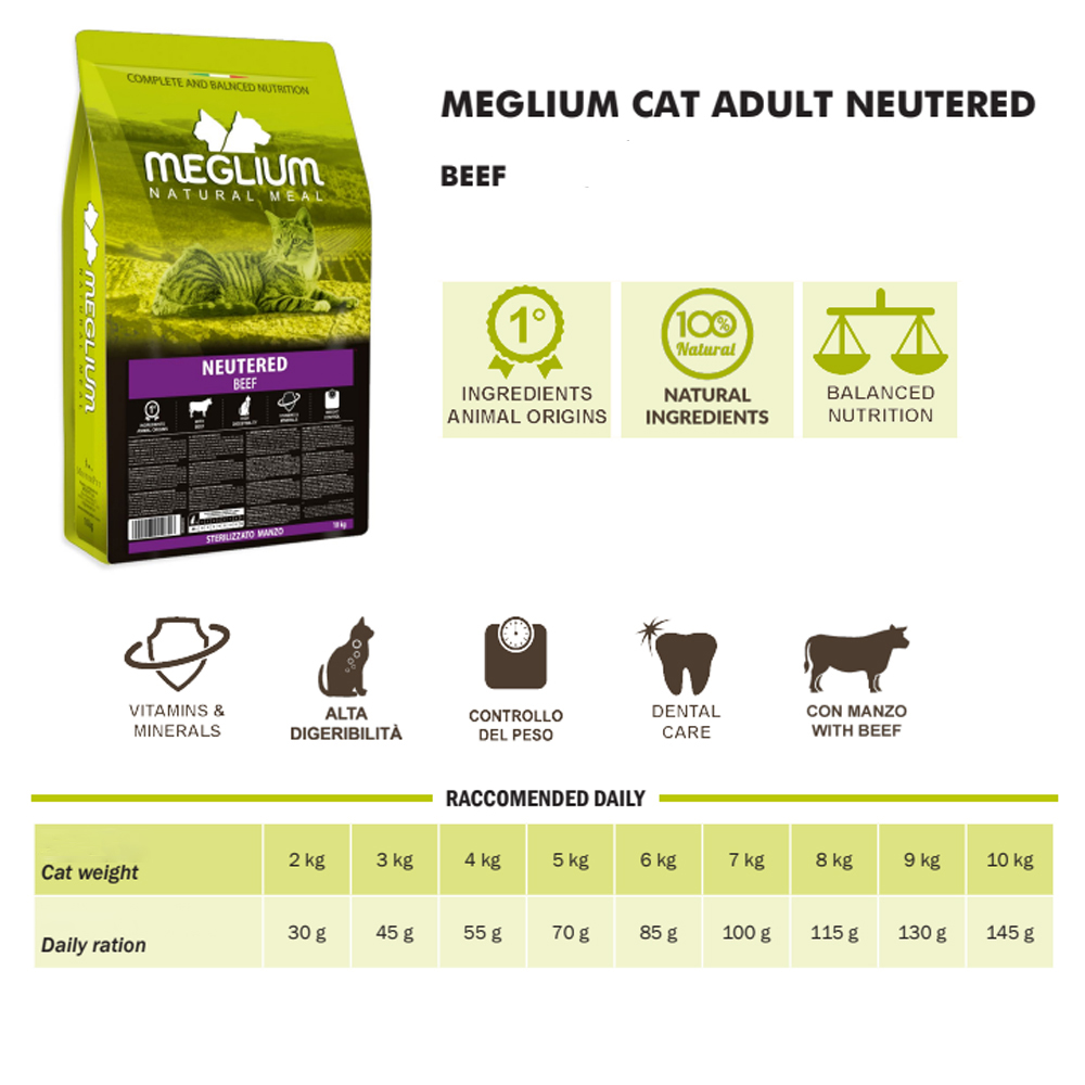 H Meglium Neutered Trout είναι μια πλήρης και νόστιμη τροφή για στειρωμένες γάτες. Περιέχει τον τέλειο συνδυασμό συστατικών για να καλύψει όλες τις διατροφικές τους ανάγκες. Με μοσχάρι που αποτελεί πλούσια πηγή πρωτεϊνών.