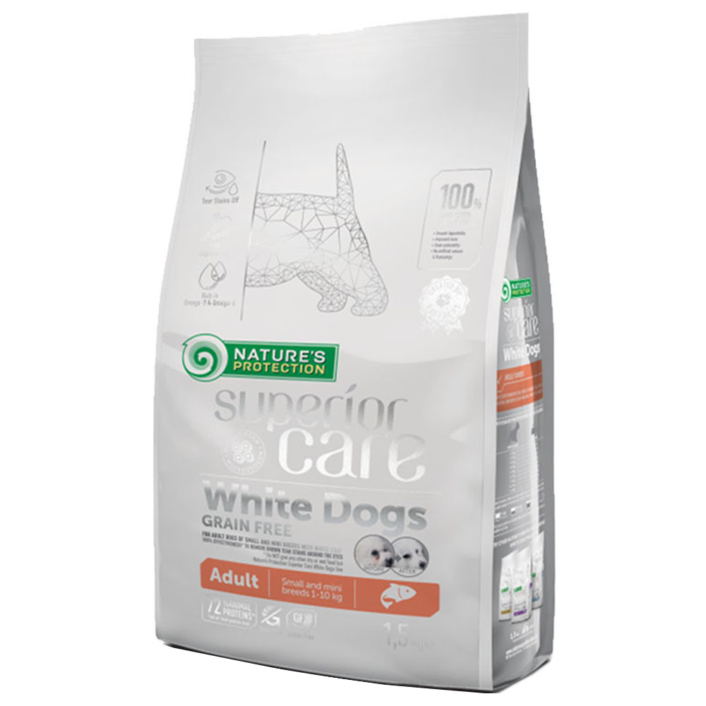 Μοναδική φόρμουλα για ενήλικες σκύλους μικρόσωμων φυλών έως 10kg, η οποία βοηθάει στην αποτροπή και απομάκρυνση των καφέ λεκέδων γύρω από τα μάτια, το στόμα και τα πόδια που εμφανίζονται λόγω των δακρύων και του σάλιου. Χωρίς σιτηρά και χωρίς γλουτένη για την αποφυγή διαταραχών του πεπτικού συστήματος και αλλεργικών αντιδράσεων. Με υψηλής ποιότητάς σολομό, ως πηγή λιπαρων οξεων Ωμέγα-3.