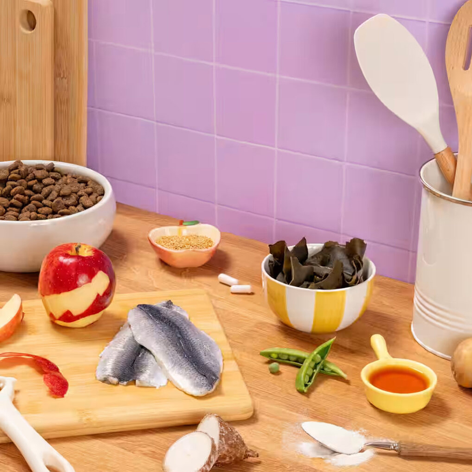 Συστατικά: Φρέσκια ρέγγα (26%), Αρακάς (26%), Πρωτεΐνη ρέγγας (15%), Πατάτες (15%), Αποξηραμένος πολτός μήλου (7,3%), Έλαιο σολομού (3%), Ζωμός ψαριού (3%), Λιναρόσπορος (3%), Κολλαγόνο (1%), Αποξηραμένα φύκια (0,2%), Φλοιός & σπόροι ψυλλίου (0,08%), Αποξηραμένα κράνμπερι (0,04%), Γλυκοζαμίνη (0,026%), Θειική χονδροϊτίνη (0,02%), Φρουκτο-ολιγοσακχαρίτες (0,019%), Μαννανο-ολιγοσακχαρίτες (0,015%), Γιούκα Μοχάβε (0,01%), Σπόροι γαϊδουράγκαθου (0,008%), Lactobacillus acidophilus HA–122 αδρανοποιημένος (15×10⁹ κύτταρα/kg).