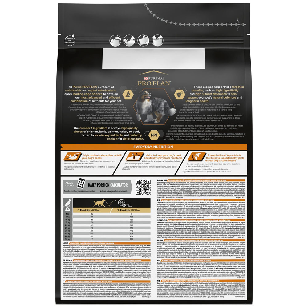 Παρασκευασμένη απο τους κτηνιάτρους και διατροφολόγους μας, η Purina PRO PLAN® με OPTIBALANCE προσφέρει μια προηγμένη διατροφή που έχει μακροχρόνια επίδραση στην υγεία του σκύλου υποστηρίζοντας τις συγκεκριμένες ανάγκες του και βοηθώντας να διατηρείται στην ιδανική φυσική κατάσταση. Η PRO PLAN MEDIUM ADULT παρέχει υψηλή απορρόφηση συστατικών για την κάλυψη των αναγκών του σκύλου σας