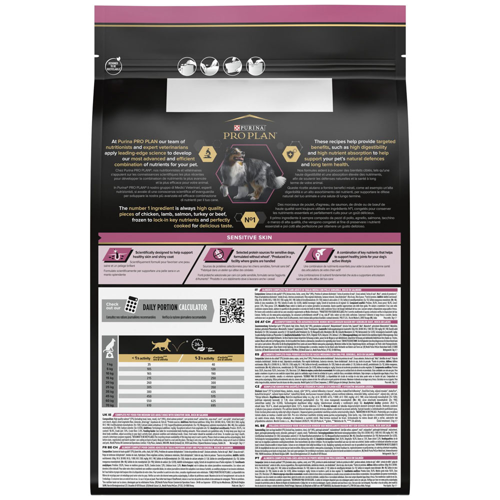 Παρασκευασμένη απο τους κτηνιάτρους και διατροφολόγους μας, η Purina PRO PLAN® Sensitive Skin προσφέρει μια προηγμένη διατροφή που υποστηρίζει το ευαίσθητο δέρμα των ενήλικων σκύλων.