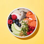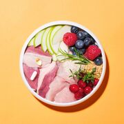 Συστατικά: Αποξηραμένος σολομός (26%), Αποξηραμένη ρέγκα (21%), Φρέσκος σολομός (12%), Κίτρινα μπιζέλια, Λίπος κοτόπουλου (8%), Πρωτεΐνη αρακά, Μαγιά μπύρας, Πολτός αποξηραμένου μήλου (3%), Υδρολυμένο συκώτι κοτόπουλου (3%), Έλαιο σολομού (2%), Λιναρόσπορος, Γλυκοζαμίνη, Θειική χονδροϊτίνη, Προβιοτικά MOS, Προβιοτικά FOS, Φλοιός και σπόρος ψυλλίου (0.015%), Mojave yucca 0.01%, Αποξηραμένα κράνμπερι (0.0012%), Αποξηραμένα βατόμουρα (0.0012%), Αποξηραμένο μύρτιλο (0.0011%), Αποξηραμένο δενδρολίβανο (0.0005%), Αποξηραμένο θυμάρι (0.0005%), Αποξηραμένο φύκι (0.0005%).