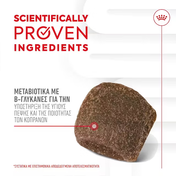 ΣΥΝΘΕΣΗ: Αφυδατωμένες πρωτεΐνες πουλερικών, ρυζάλευρο, γλυκερόλη, ψιλά πίτυρα σίτου, ζύμες (πηγή ολιγοσακχαριτών μαννάνης και β-γλυκάνης (4,7%)), κονιοποιημένη κυτταρίνη, σιτάλευρο, υδρολυμένες ζωικές πρωτεΐνες, ζωικά λίπη, ανόργανα στοιχεία, φρουκτο-ολιγοσακχαρίτες.