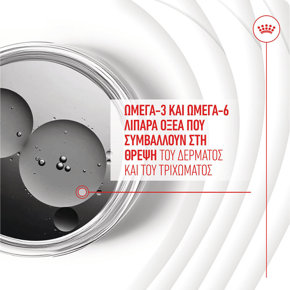 Τα μασώμενα συμπληρώματα Skin & Coat Adult της ROYAL CANIN® σχεδιάζονται για τη διατήρηση της υγείας του δέρματος και της λάμψης του τριχώματος. Αυτά τα μασώμενα συμπληρώματα περιέχουν ωμέγα-3 και ωμέγα-6 λιπαρά οξέα που θρέφουν το δέρμα και το τρίχωμα, μαζί με ψευδάργυρο και GLA για την υποστήριξη της λειτουργίας του επιδερμικού φραγμού. Επιπλέον, περιλαμβάνεται ένα μείγμα βιταμινών που προάγει τη φυσική και υγιή ανανέωση των κυττάρων του δέρματος.