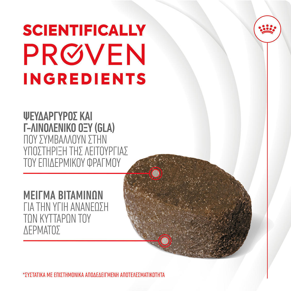 ΣΥΝΘΕΣΗ: Αφυδατωμένες πρωτεΐνες πουλερικών, σιτάλευρο, γλυκερόλη, έλαιο βοράγου, αλεσμένος λιναρόσπορος, υδρολυμένες ζωικές πρωτεΐνες, κονιοποιημένη κυτταρίνη.