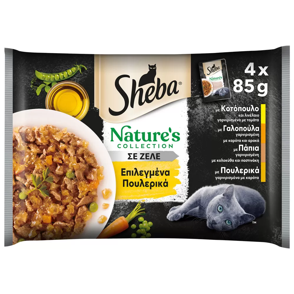 - Η νόστιμη αυθεντική γεύση του SHEBA® επιτυγχάνεται χωρίς τεχνητά αρώματα, χρωστικές και συντηρητικά