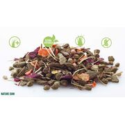 φυτικής προέλευσης (χλοοτάπητα, χόρτα και βότανα 20%), λαχανικά (μπιζέλια