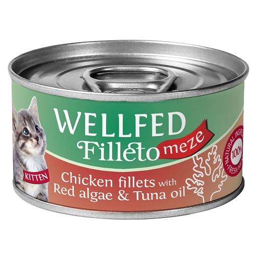Συμπληρωματική υγρή τροφή για γατάκια από φιλέτο κοτόπουλο, με κόκκινα φύκια & λάδι τόνου.