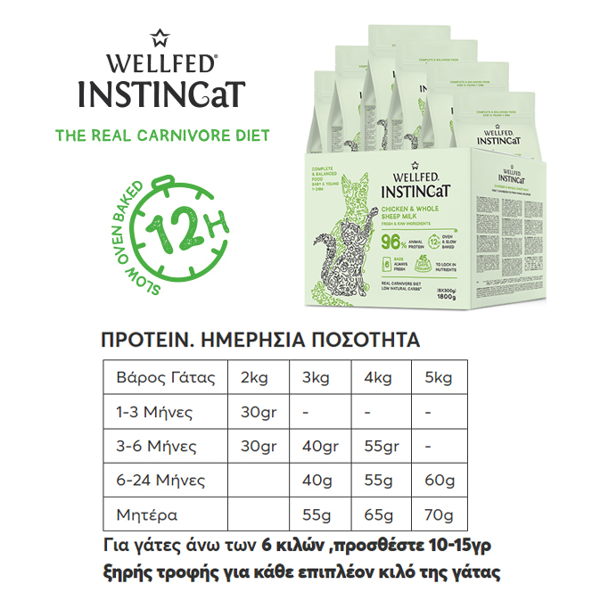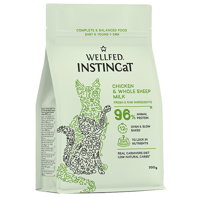 Η INSTINCaT Baby & Young είναι μια πλήρης, φυσικά ισορροπημένη αφυδατωμένη τροφή για μικρά & νεαρά γατάκια 1-24 μηνών, παρασκευασμένη από φρέσκα συστατικά και ψημένη αργά στον φούρνο (slow oven baked), ώστε να διατηρεί αναλλοίωτη τη γεύση και τη θρεπτική της αξία. Χάρη στη φυσική της σύνθεση, προσφέρει πεπτικότητα που φτάνει έως και το 92%, βοηθώντας την καλύτερη απορρόφηση των θρεπτικών ουσιών και υποστηρίζοντας τη συνολική υγεία της γάτας.
