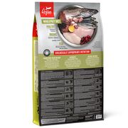 Σύνθεση: Γαλοπούλα 29% (Φρέσκια Γαλοπούλα 17%, Αποξηραμένο κρέας Γαλοπούλας 12%), Αποξηραμένο κρέας Κοτόπουλου 16%, Αρακάς, Αποξηραμένες Πατάτες, Ρεβύθια, Πολτός Τεύτλων 3%, Λίπος Κοτόπουλου 2%, Κυτταρίνη, Αποξηραμένη Πρωτεΐνη Πατάτας, Λάδι Σολομού 1%, Αποξηραμένη Ρίζα Ραδικιού 0,5%, Καρότα, Μήλα, Μπρόκολο, Σπανάκι, Βατόμουρα, Κράνμπερι, Ντομάτες, Yucca Schidigera, Εκχύλισμα Μαγιάς (πηγή μαννάν-ολιγοσακχαριτών), Υδροχλωρική Γλυκοζαμίνη 100mg/kg, Θειική Χονδροϊτίνη 100mg/kg.